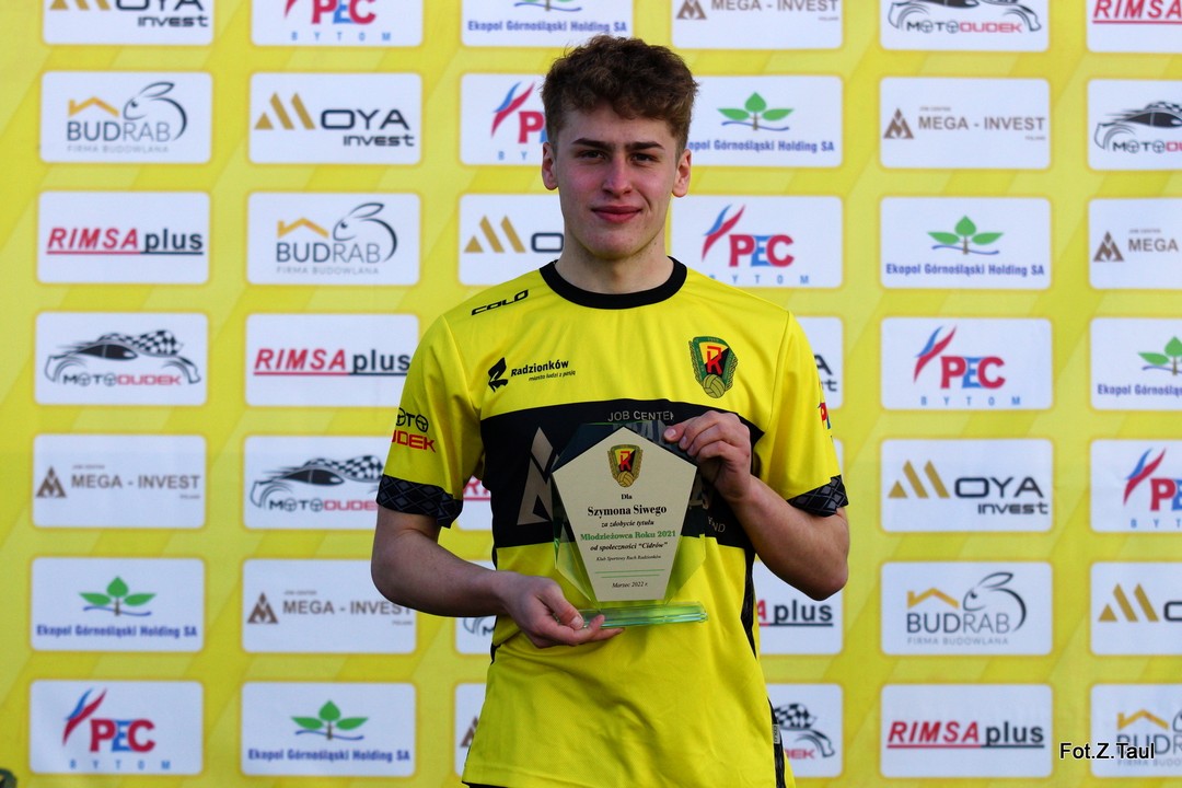 Szymon Siwy – wychowanek UKS-u Ruch Radzionków, KS-u Radzionków oraz uczeń Szkoły Mistrzostwa Sportowego Radzionków (nasz tegoroczny maturzysta) został „Młodzieżowcem Roku 2021” od społeczności „Cidrów”. Szymonowi serdecznie gratulujemy i życzymy dalszych sukcesów na boisku oraz podczas zbliżających się matur!