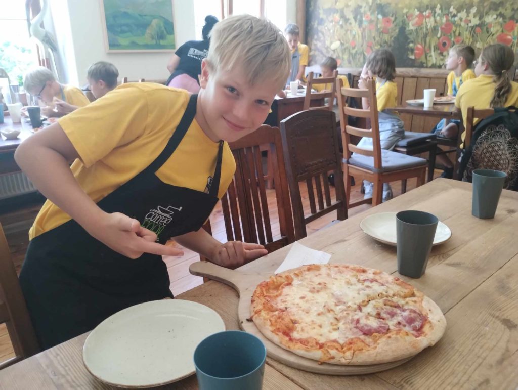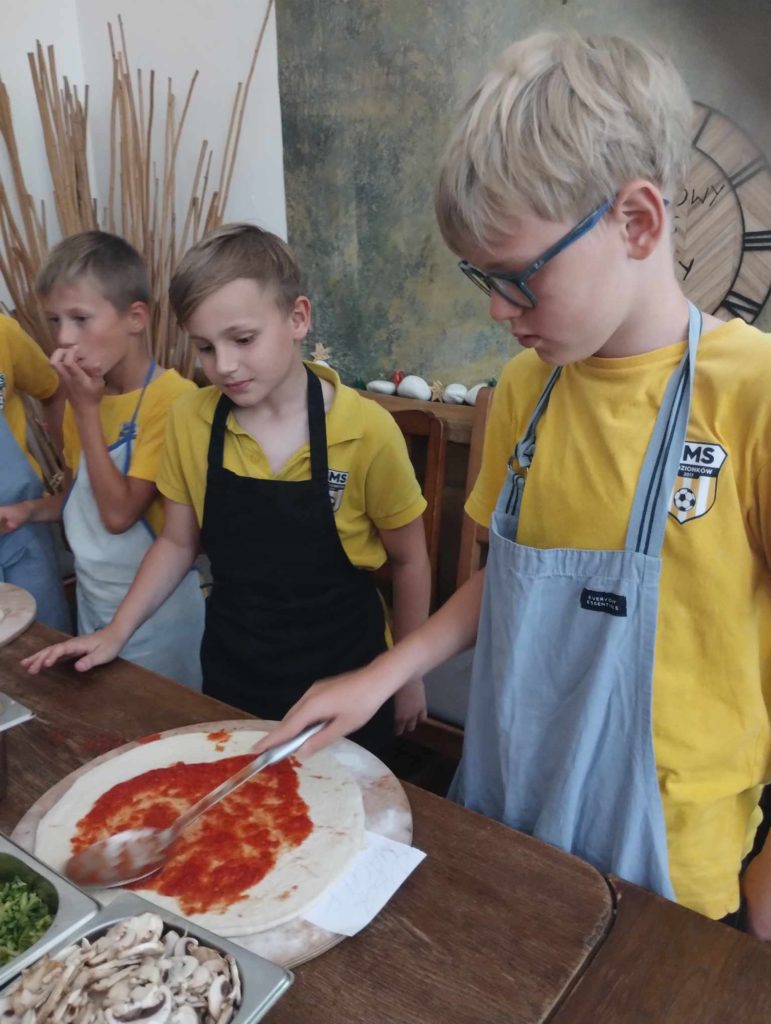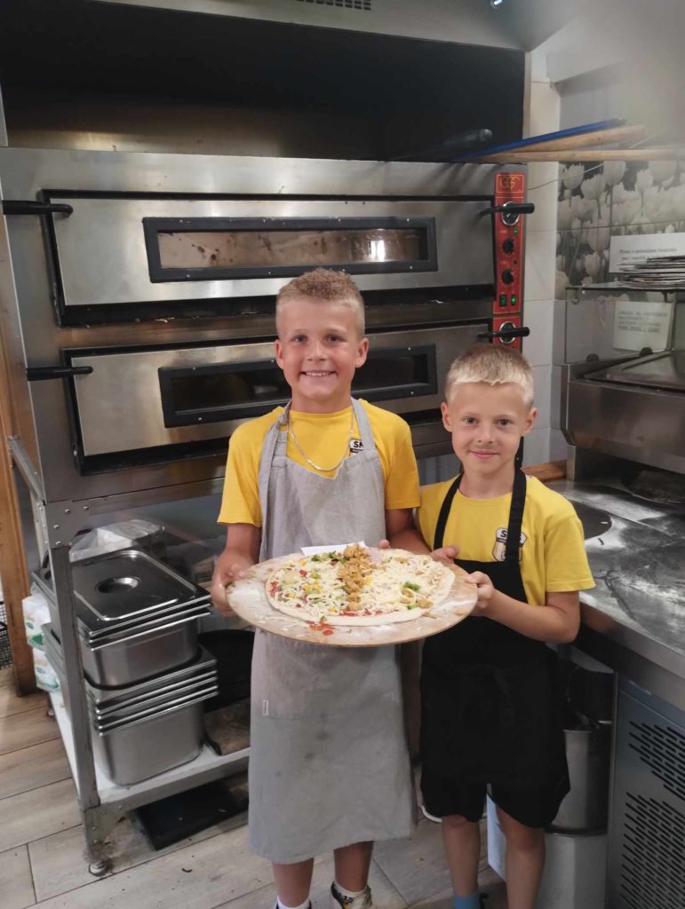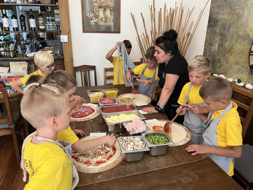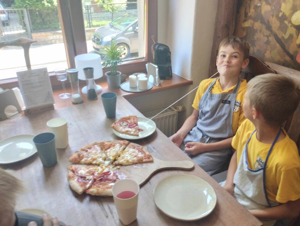 Pod koniec roku szkolnego klasy 1️⃣-3️⃣ wybrały się do pizzerii „Pod Drewnianym Bocianem”🍕, żeby poznać tajniki przyrządzania pysznej pizzy🧐. Warsztaty bardzo się wszystkim podobały. Każdy przygotował pizzę🍕 według własnych upodobań. Po degustacji był też słodki deser i napoje. Zwieńczeniem zajęć był konkurs plastyczny🖍. Wyróżnieni uczniowie za najpiękniejsze prace otrzymali zaproszenie na darmową pizzę do restauracji😍🤩. Po warsztatach nasi najmłodsi uczniowie przeszli się uliczkami Tarnowskich Gór i poznali kilka zabytkowych miejsc. Spędzili też czas na placu zabaw na wspólnych szaleństwach. Serdecznie dziękujemy p. A. Musiedlak, p. N. Krytowskiej, p. K. Bednarek oraz p. M. Mołdawie za opiekę nad naszymi uczniami.