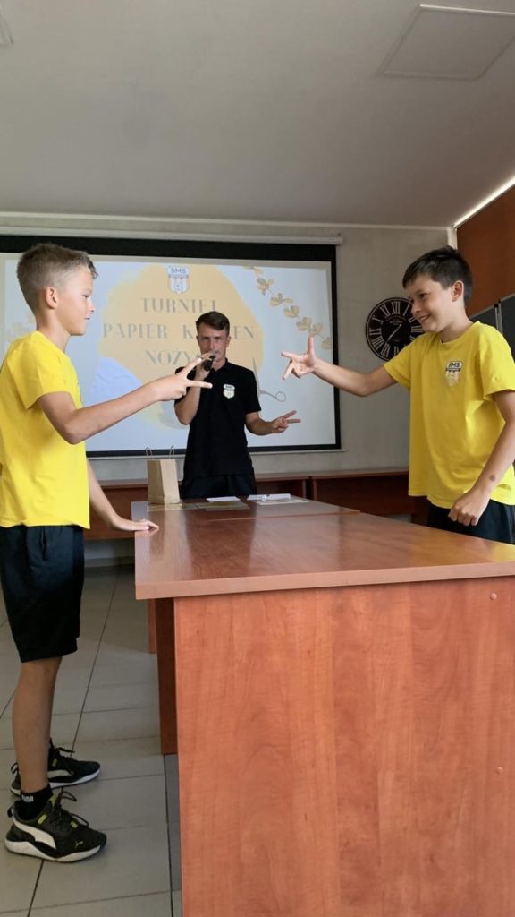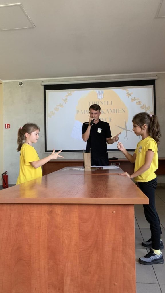2️⃣7️⃣ września 2023 r. w ramach zajęć świetlicowych odbył się „I. szkolny turniej: papier📄-kamień-nożyce✂️”. Całość zmagań została podzielona na dwie części: fazę wstępną i finałową. Turniej przyciągnął tłumy chętnych uczniów szkoły podstawowej, a całość rywalizacji rozpoczęła się pojedynkiem pani dyrektor oraz dyrektora ds. sportu p. H. Sobali. Pojedynki wywoływały olbrzymią ilość emocji naszych uczniów i niosły pokłady dobrego humoru! Już nie umiemy doczekać się fazy finałowej, która niebawem 😉.