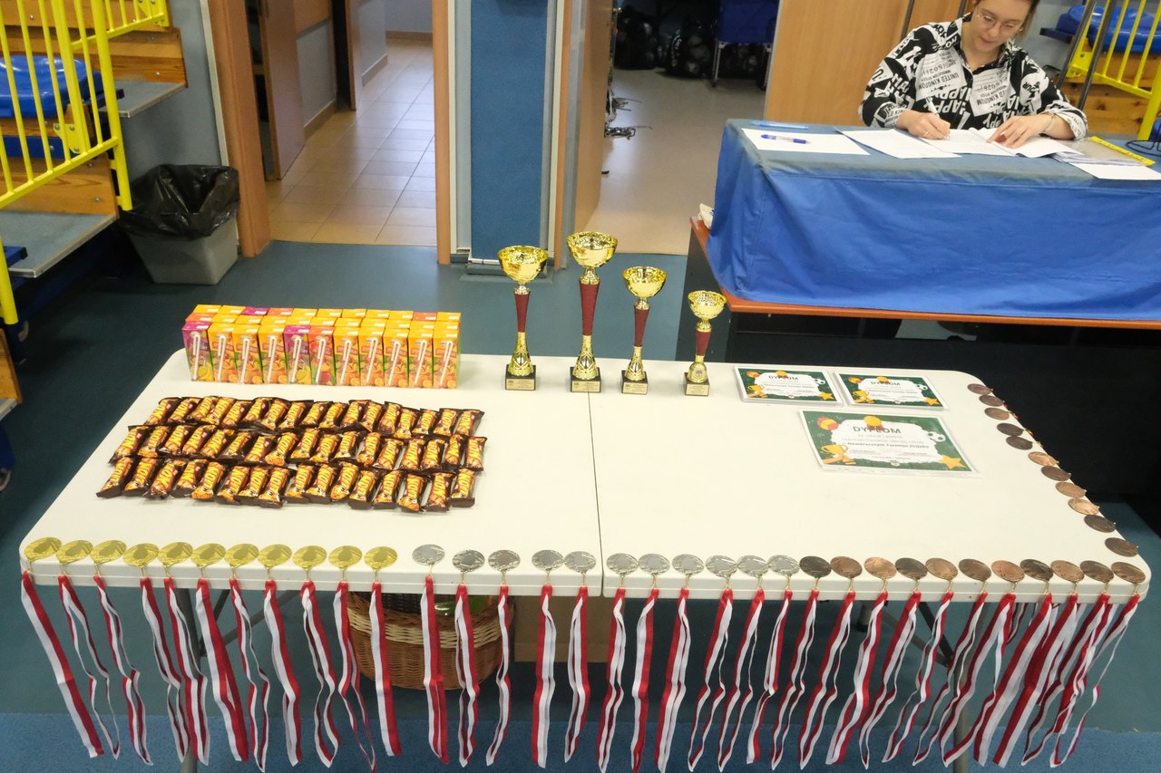 Wszyscy zawodnicy za udział otrzymali soczki, batoniki, pamiątkowe dyplomy, medale, a szkoły dodatkowo puchary 🏆. Serdecznie gratulujemy! 💛🖤