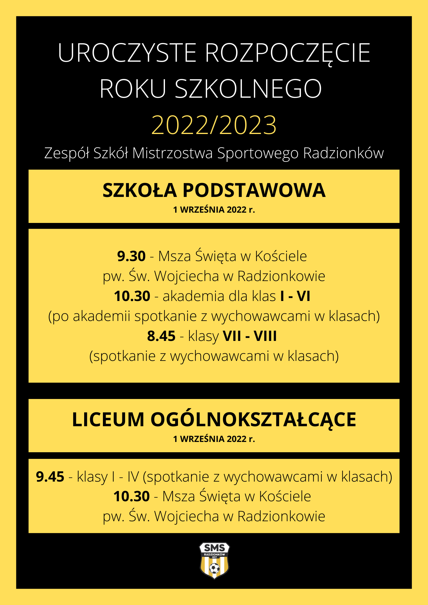 SMS DEV R > Blog > Informacje > Uroczyste rozpoczęcie roku szkolnego 2022/2023 już 1️⃣ września. Poniżej przedstawiamy harmonogram pierwszego dnia szkoły 👇👩🏫