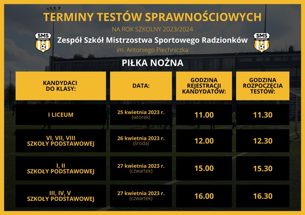 SMS DEV R > Blog > Nabór > UWAGA🔈❗️ Ogłaszamy terminy 1️⃣. tury testów sprawnościowych z zakresu PIŁKI NOŻNEJ⚽️ na rok szkolny 2️⃣0️⃣2️⃣3️⃣/2️⃣0️⃣2️⃣4️⃣⤵️