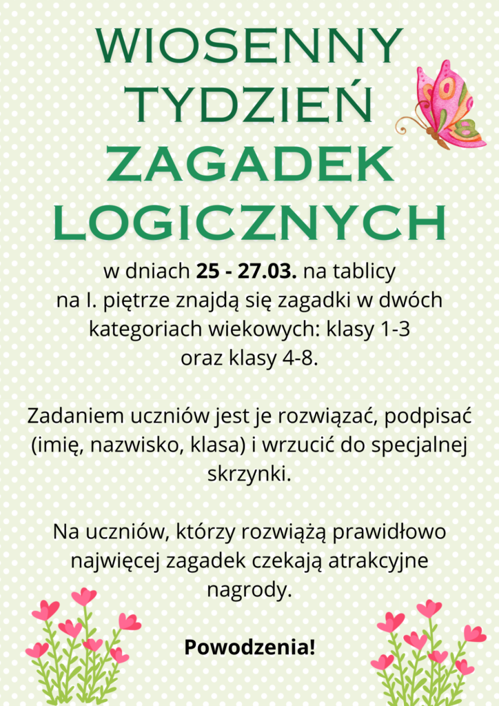 Już od poniedziałku 2️⃣5️⃣ marca 2024 r. zapraszamy do udziału w „Wiosennym Tygodniu Zagadek”🔽
