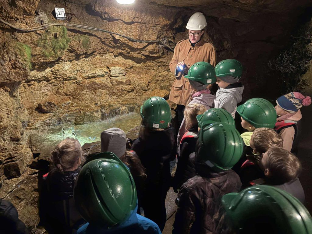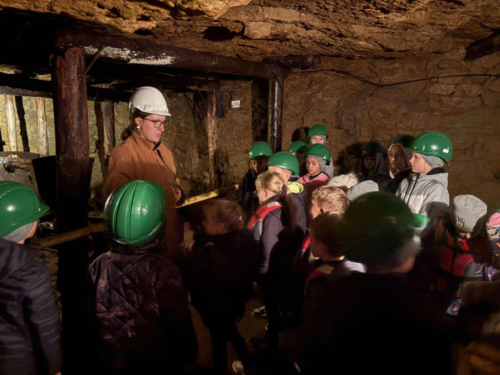 Na dzieci czekało mnóstwo atrakcji 🎒😊 – zjechali 400 metrów w głąb Ziemi 🌍, by odkryć, kim byli tarnogórscy gwarkowie, czym się zajmowali i jak wydobywali srebro oraz ołów z kopalni ⚙️⛏️. W ciemnych korytarzach spotkali legendarnego Skarbnika 👻 – opiekuna skarbów, który od 201 lat czuwa nad bezpieczeństwem górników i… naszych małych odkrywców! 🛡️👧🧒