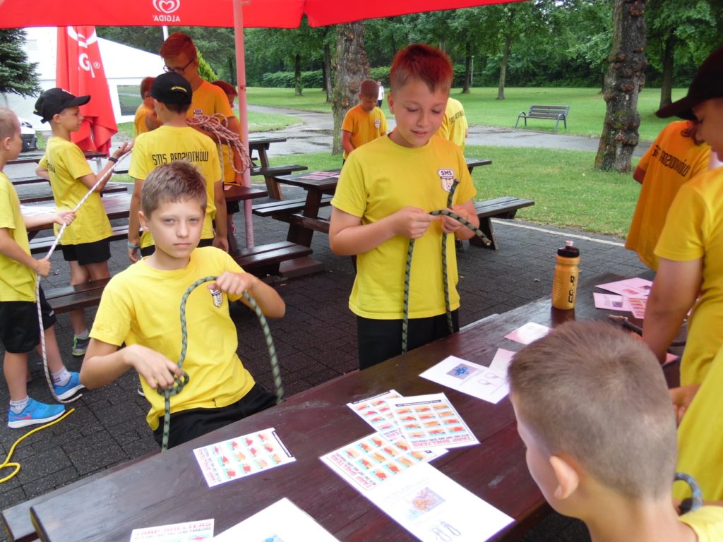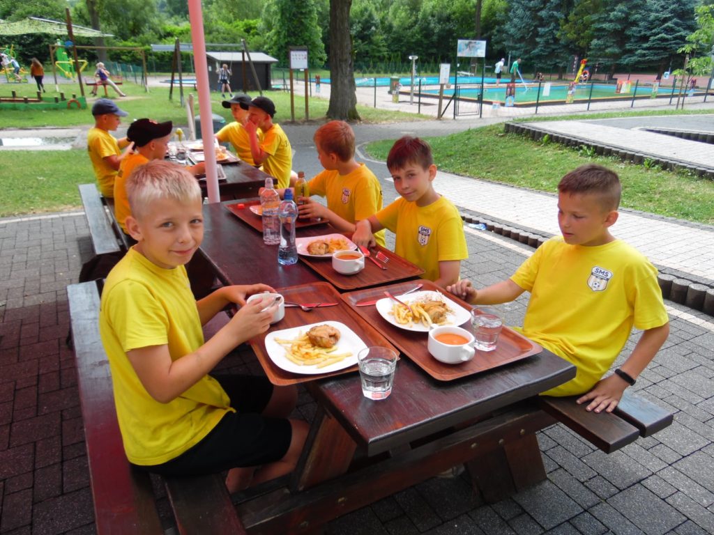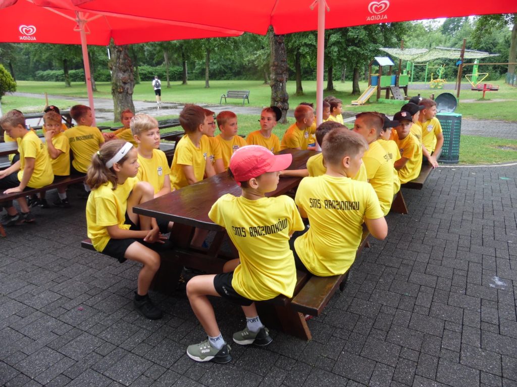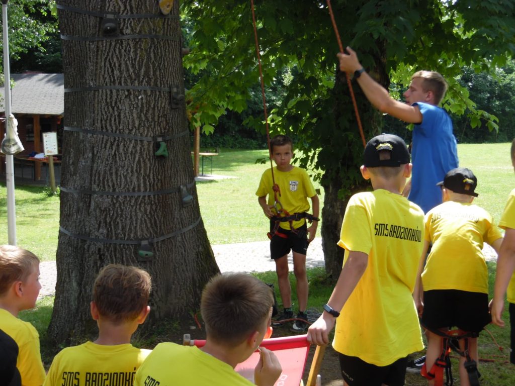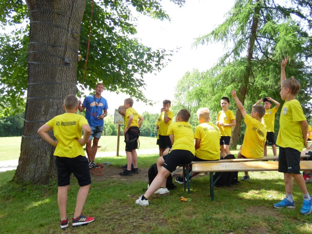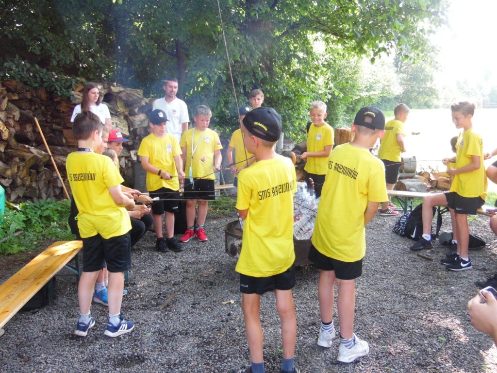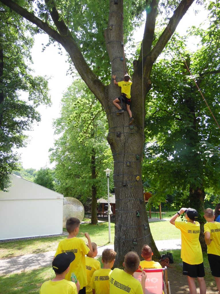 22 czerwca 2021 r. uczniowie klas IV – VI wybrali się na wycieczkę do ośrodka integracyjnego H20 w Ochabach. Po dojechaniu na miejsce na grupy czekali animatorzy, którzy zapewnili naszym uczniom szereg atrakcji i aktywności. Klasa VI udała się na zajęcia integrujące grupę, z kolei na klasę IV i V czekał „Adventure day”. Nie zabrakło więc nauki wiązania lin, budowania szałasów w lesie czy wspinaczki po drzewie. Uczniowie klasy VI mieli z kolei mnóstwo atrakcji integrujących zespół. W przerwie między blokami zajęciowymi czekał na uczestników obiad, a na kolację ognisko z pieczeniem kiełbasek. Chociaż upał doskwierał, to nikt nie narzekał i wszyscy zmęczeni, ale zadowoleni wrócili do domu 😊