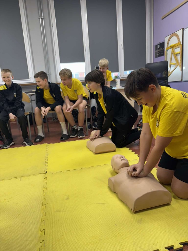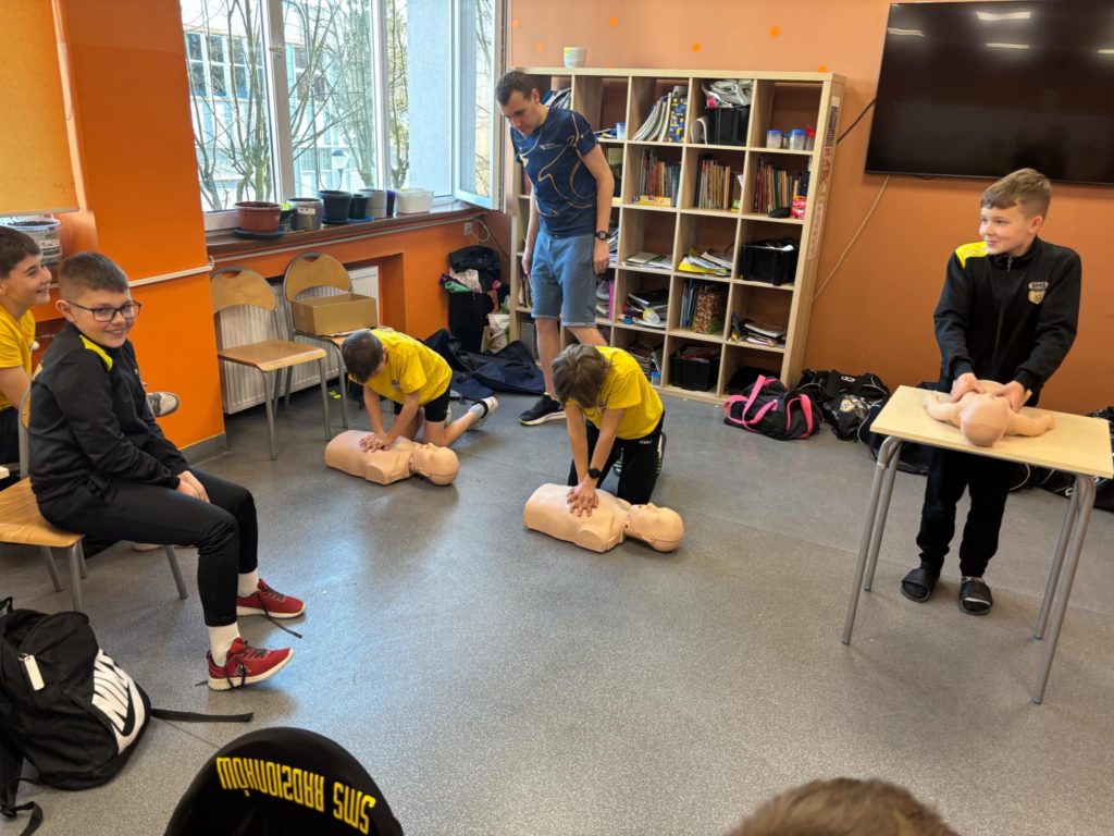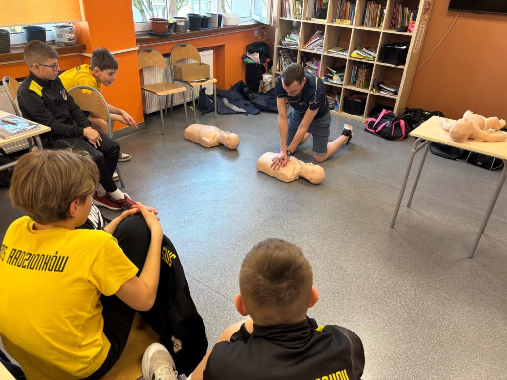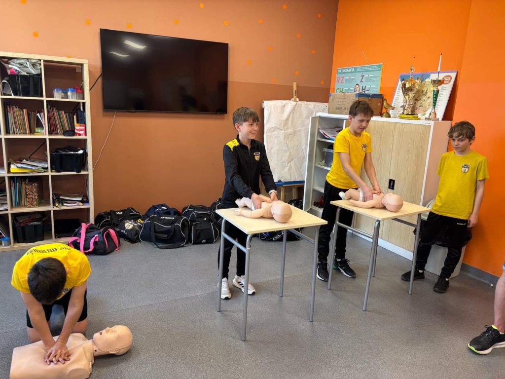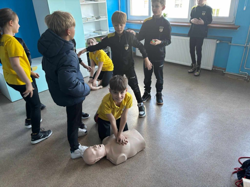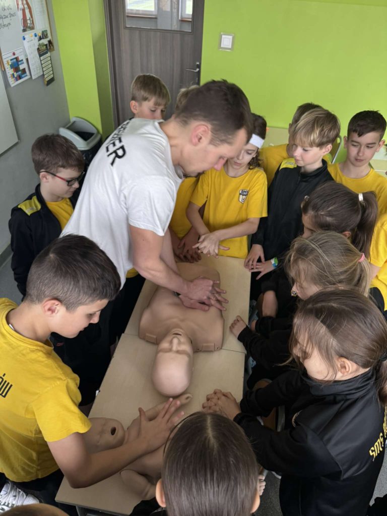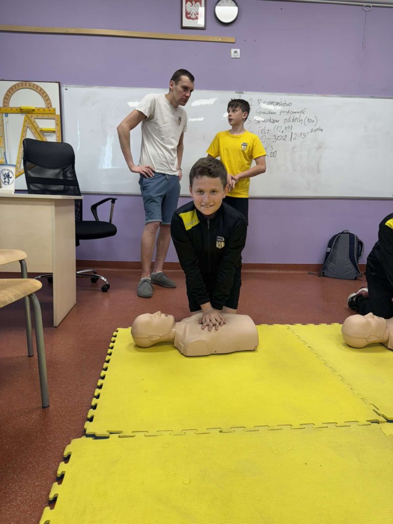 W lutym i marcu 2️⃣0️⃣2️⃣5️⃣ r. uczniowie naszej szkoły, zgodnie z zaleceniami MEN, podczas zajęć z wychowawcą realizowali zajęcia z 𝗽𝗶𝗲𝗿𝘄𝘀𝘇𝗲𝗷 𝗽𝗼𝗺𝗼𝗰𝘆 𝗽𝗿𝘇𝗲𝗱𝗺𝗲𝗱𝘆𝗰𝘇𝗻𝗲𝗷🩺. Najmłodsi uczniowie poznali, a starsi przypomnieli sobie zasady obowiązujące w momencie, gdy ktoś będzie potrzebował takiej pomocy🚨 (ocena sytuacji🧐, telefony alarmowe☎️, pozycja bezpieczna, uciski klatki piersiowej). Serdecznie dziękujemy p. P. Nawrotowi – naszemu nauczycielowi edukacji dla bezpieczeństwa za przeprowadzenie zajęć pokazowych w każdej z naszych klas 💛🖤