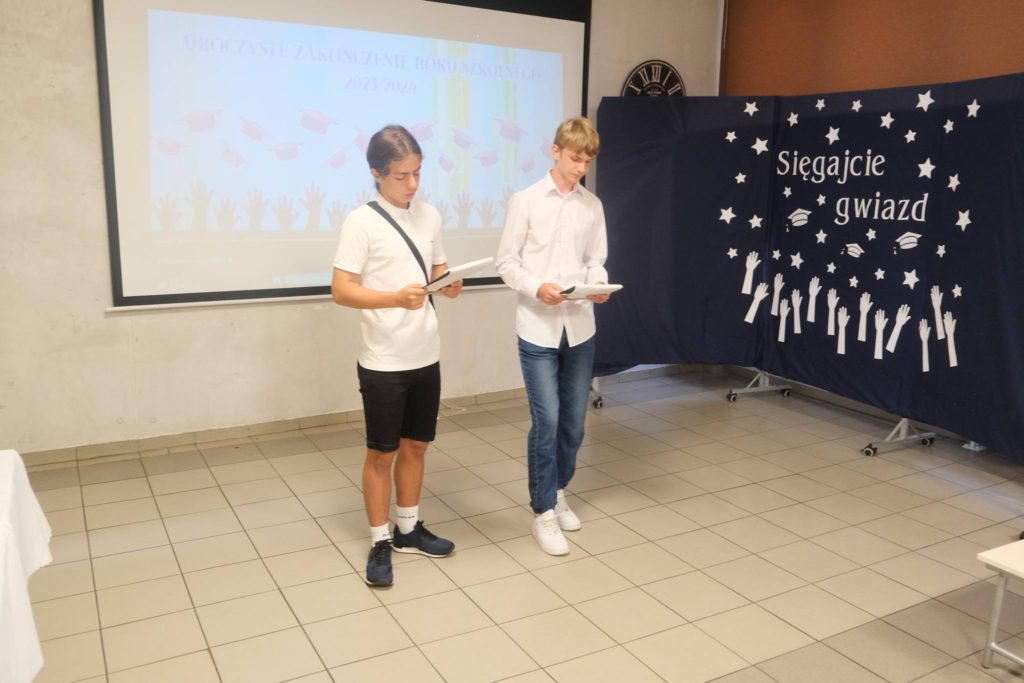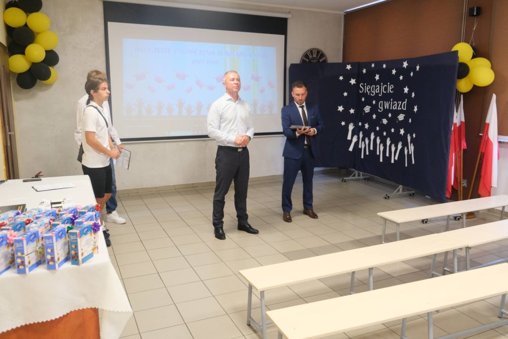 2️⃣1️⃣ czerwca 2024 r. uroczystą akademią zakończyliśmy w naszym liceum rok szkolny 2️⃣0️⃣2️⃣3️⃣/2️⃣0️⃣2️⃣4️⃣ . Podczas trwania akademii rozdane zostały świadectwa z wyróżnieniem dla najlepszych uczniów liceum oraz stypendia📃 naukowe i sportowe. Serdecznie gratulujemy👏 wszystkim zasłużonym uczniom, a w szczególności Jakubowi Lampie z klasy 3️⃣, który zdobył w tym roku szkolnym obydwa stypendia. Po oficjalnej części wszyscy uczestnicy akademii mieli możliwość powspominania minionego roku szkolnego oglądając prezentację przygotowaną specjalnie na tę okazję. Po rozdaniu świadectw🗞, uczniowie wzięli udział w Mszy Św., na której nie zabrakło także naszego pocztu sztandarowego.