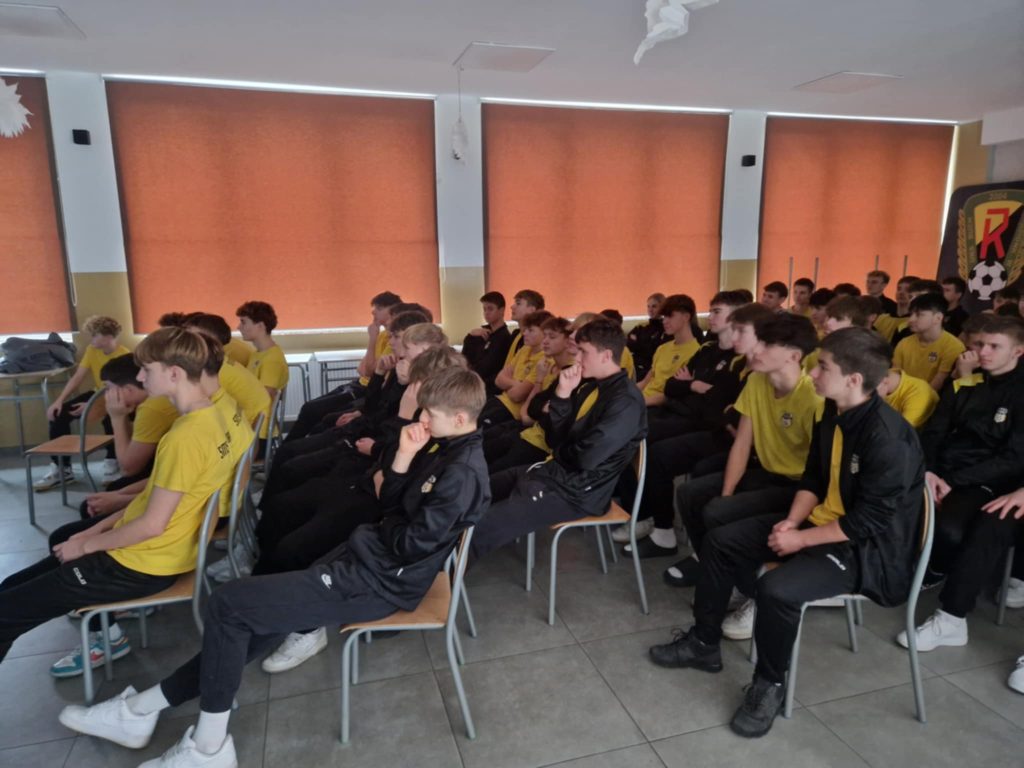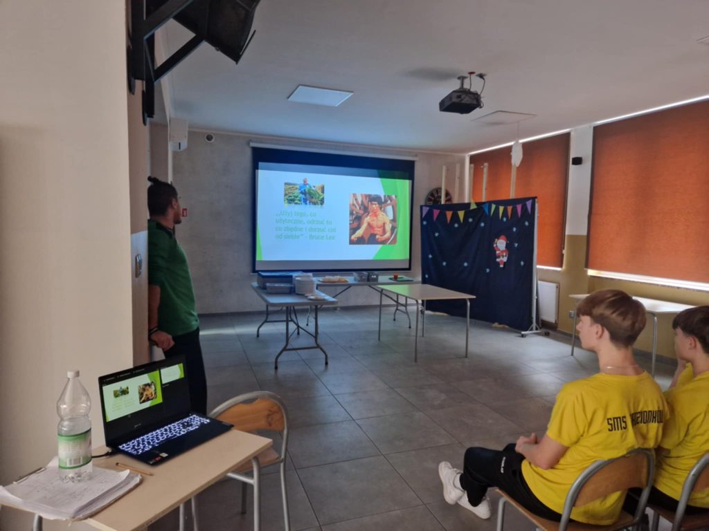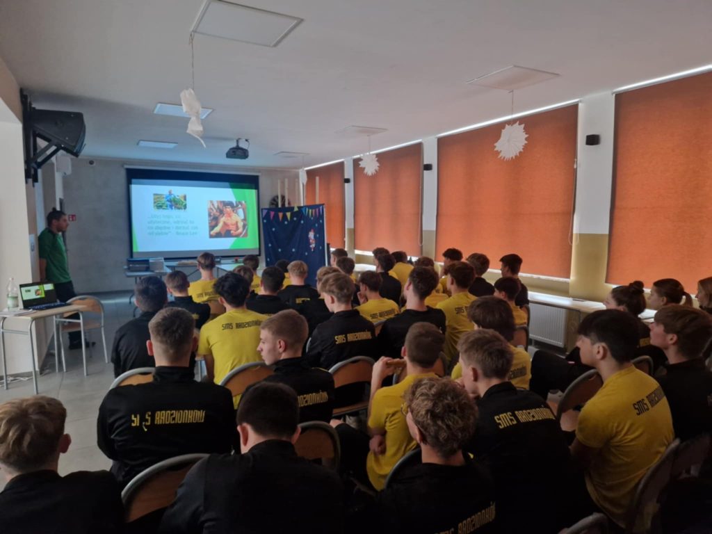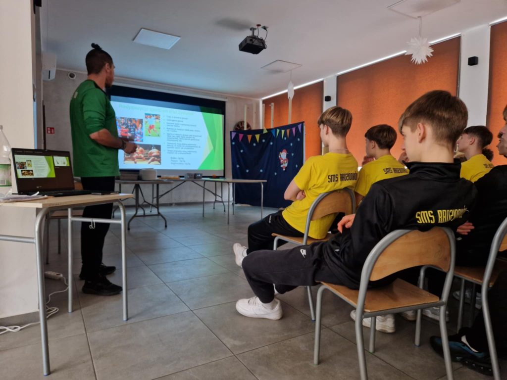 1️⃣0️⃣ stycznia 2025 r. miał miejsce wykład o zdrowym żywieniu🍎🥐🥪 dedykowany dla licealnych klas SMS-u. Podczas prelekcji prowadzonej przez trenera K. Kisielewskiego nasi uczniowie dowiedzieli się jakie mamy somatotypy🧎 w sporcie, jaką rolę odgrywają makroskłądniki w aktywności fizycznej, jaka powinna być właściwa suplementacja, regeneracja i dawka snu🥱. Prezentacja cieszyła się sporym zainteresowaniem💛🖤 ze strony młodzieży, gdyż dostarczyła cennych informacji dotyczących właściwego żywienia👊. Dziękujemy p. K. Kisielewskiemu za cenny wykład.