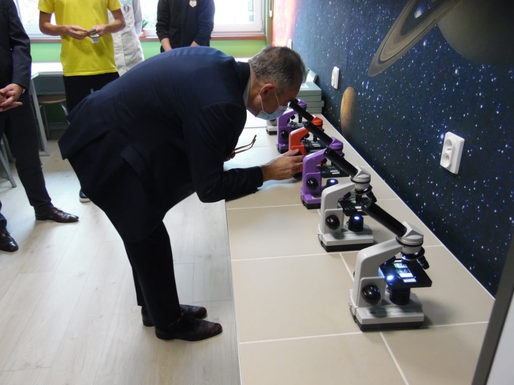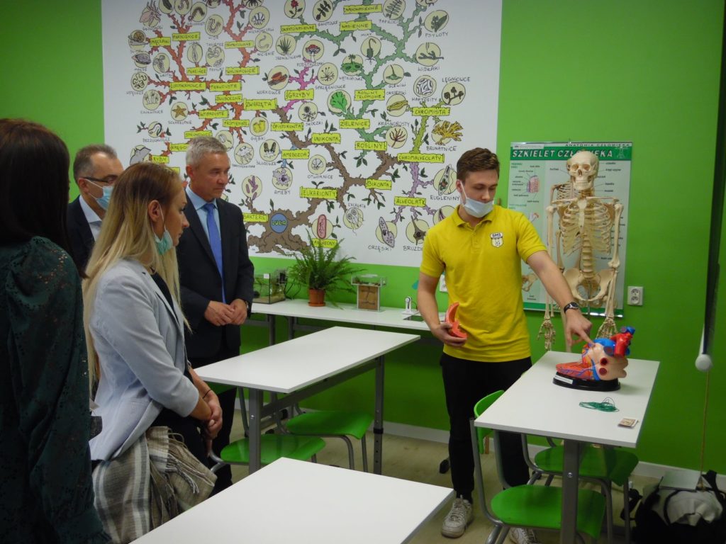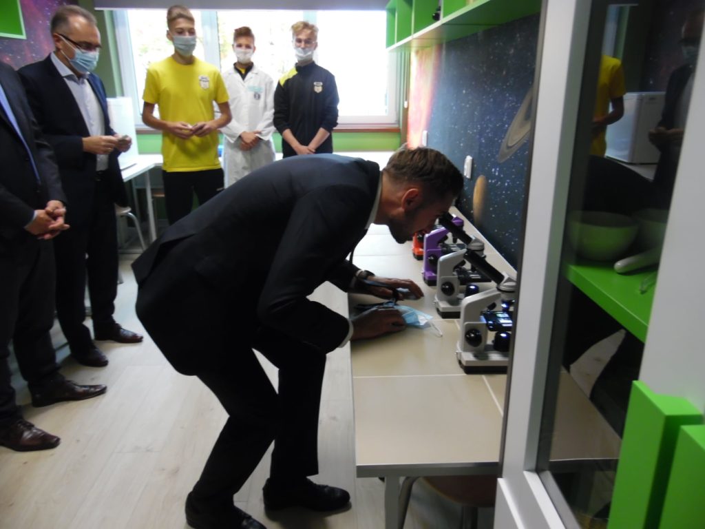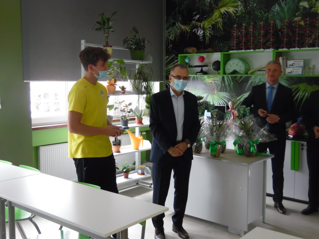 15 października 2021 r. nastąpiło oficjalne otwarcie Zielonej pracowni „Per scientia ad astra”. Na uroczystości mogliśmy gościć pana Burmistrza Gabriela Tobora, który wraz z panią Dyrektor Justyną Tobór oraz prezesem stowarzyszenia panem Mirosławem Smyłą przecięli wstęgę i oficjalnie otworzyli naszą pracownię. Dla zaproszonych gości odbył się pokaz biologiczno-chemiczny w wykonaniu uczniów naszego liceum.