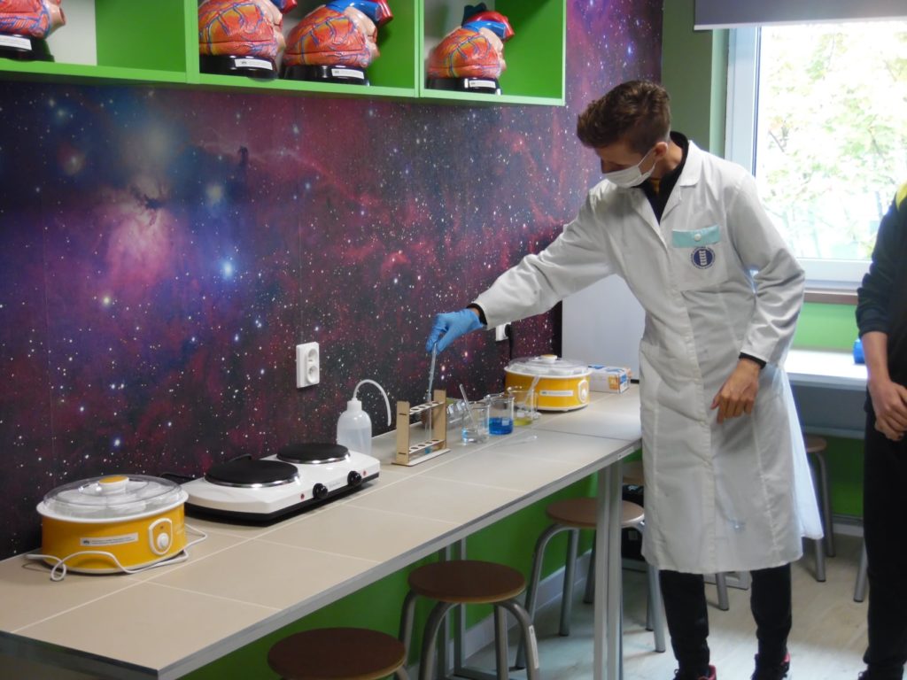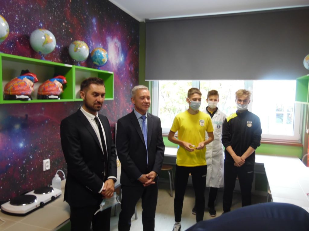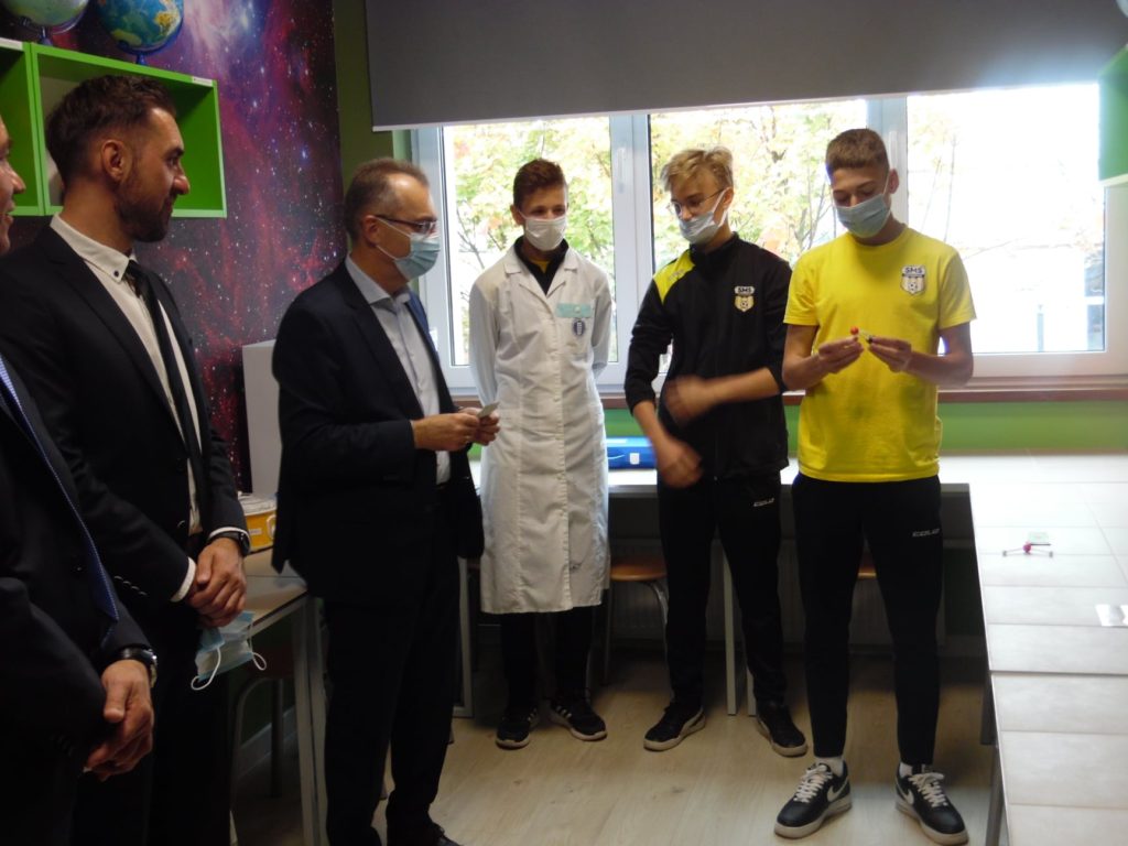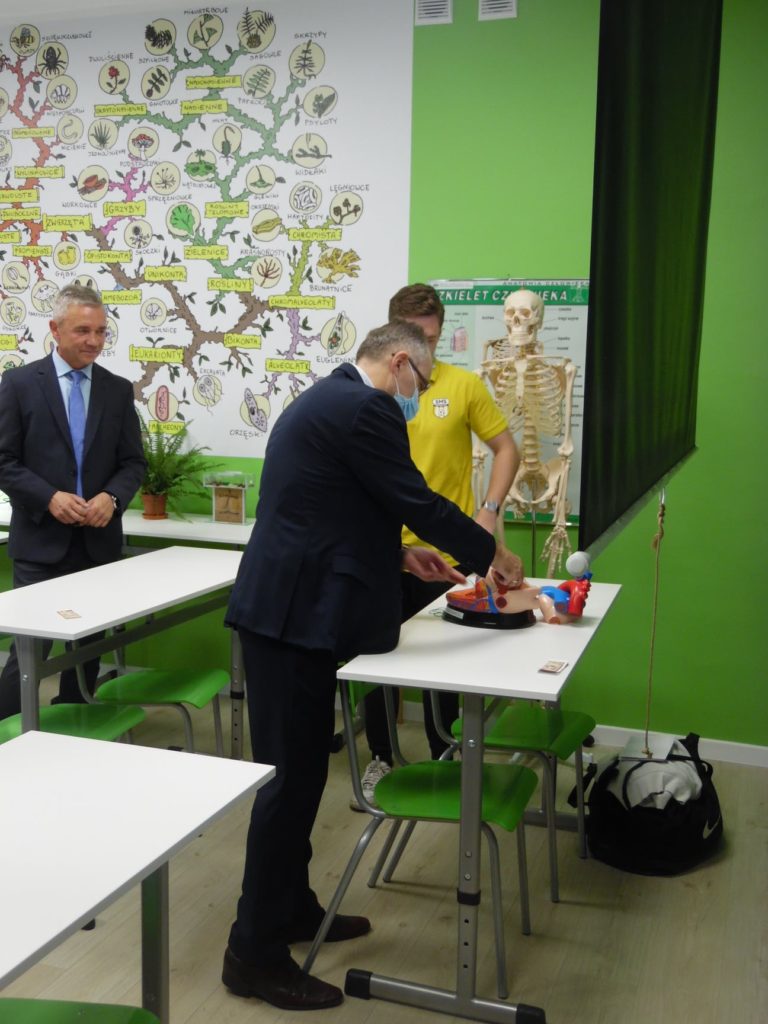 15 października 2021 r. nastąpiło oficjalne otwarcie Zielonej pracowni „Per scientia ad astra”. Na uroczystości mogliśmy gościć pana Burmistrza Gabriela Tobora, który wraz z panią Dyrektor Justyną Tobór oraz prezesem stowarzyszenia panem Mirosławem Smyłą przecięli wstęgę i oficjalnie otworzyli naszą pracownię. Dla zaproszonych gości odbył się pokaz biologiczno-chemiczny w wykonaniu uczniów naszego liceum.