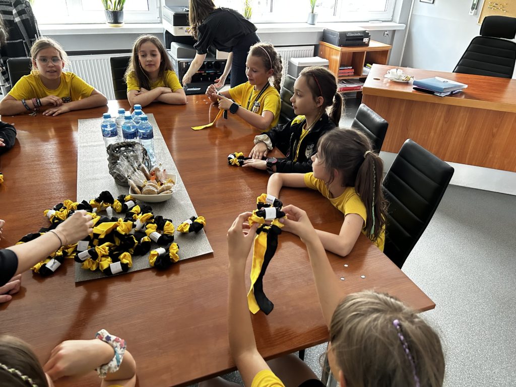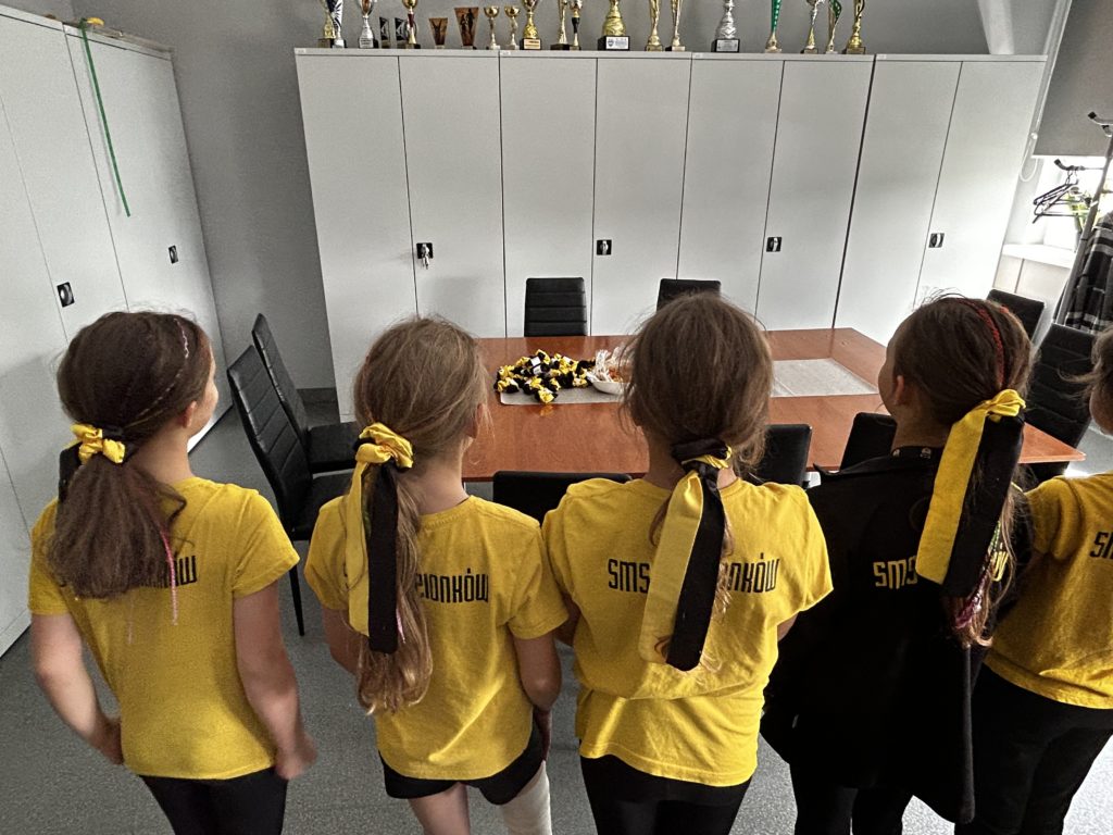 Z wielką dumą💛 i radością😍 prezentujemy nowość dla naszych siatkarek!🏐 Wykonane na specjalne zamówienie i z okazji zbliżającego się „Dnia dziecka” najmłodsze reprezentantki SMS-u mogą pochwalić się żółto-czarnymi scrunchies do włosów – wykonanymi z projektu Madzi z klasy 3️⃣. Mamy nadzieję, że gumeczki przyniosą szczęście naszym dziewczynkom podczas ich sportowych rozgrywek 😉